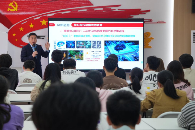 2025年4月15日,计算机学院党委副书记、副院长龚玉清在大学生成长服务中心(竹康社区)思齐馆多功能室,作了主题为“AI赋能:人工智能时代如何提升学习力和行动力”的座谈分享交流。