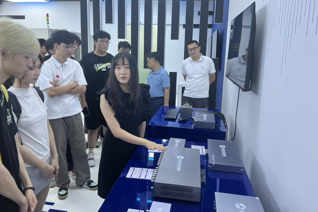 在企业技术专家的指引下,师生们重点参观了欧森斯AI声学检测实验室和智能制造解决方案展厅。针对软件工程专业在算法开发、数据处理等教学核心领域关注的工作,企业工程师深入展示了VIBESOUND音频分析软件的底层算法逻辑,以及闻铂声ONEBOX设备在电机异音检测中的全流程应用。师生与我校优秀毕业生、现就职于该公司的裴国鸿进行了深入交流。裴国鸿在职业规划方面激励学生们勤奋学习专业课程、提高语言能力,并积极参与学科竞赛、项目等活动。珠海欧森斯传感技术有限公司人事主管李欢女士向同学们提供了在校期间自我提升、简历撰写等宝贵建议,并鼓励学生主动参与实习,积累实际项目经验。